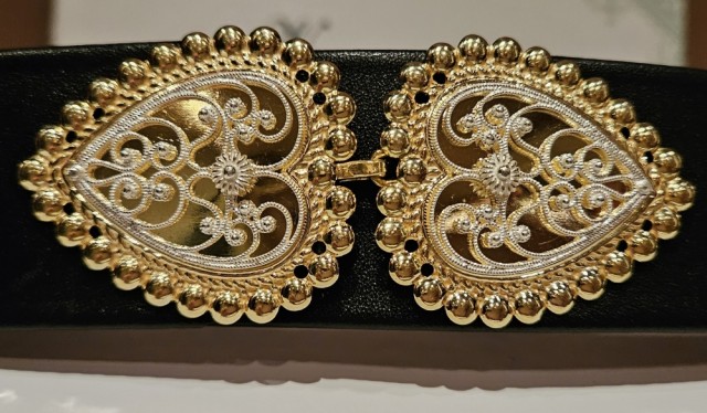 (012514) (600564) (600404) (724100) (724500) (724400) Sølvbelte, Hvit/forgyldt med forgyldt spenne, Vossasylv Hvit/forgyldt. Du velger lengde selv livmål +3 cm, slik at man får plass til bunaden. Før pris gjelder på belte 70 cm (+355 pr ekstra støl du trenger , 1 støl er 3 cm) Fra kvalitetsleverandøren Vossasylv, 830s TilbudNOK7 954,00 Førpris:NOK10 606,00 Rabatt -25% inkl. mva. Livvidde70-73 cm +355,0073-76 cm +710,0076-79cm +1 065,0079-82cm +1 420,0082-85cm +1 775,0085-88 cm +2 130,0088-91cm +2 485,0091-94 cm +2 840,0094-97 cm +3 195,0097-100 cm +3 550,00100-103 cm +3 905,00103-106cm +4 260,00106-109 cm +4 615,00109-112 cm +4 970,00112-115 cm +5 325,00115-118 cm +5 680,00118-121 cm +6 035,00121-124 cm +6 390,00Farge på skinnlist 4 cmsvarthvitblåVeskestølMed veskestølUten veskestøl Kjøp Vipps hurtigkasseKjøp nå med Vipps hurtigkasse Del dette Produktinfo Bunadsølvet setter et ekstra vakert preg på bunaden, Bunadbelte er selve prikken over i en. Før i tiden ble dette oftest gitt i bryllupdgave til bruden. Derfor ble det også kalt konebelte.