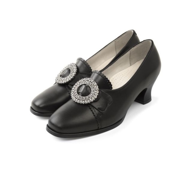 Maud bunadssko fra Klaveness er både elegant og detaljert. Maud har tradisjonell timeglassformet hæl, fine detaljer i skinn og en spenne inspirert av den første Bunadskoen som Klaveness produserte. Denne feminine skoen er laget av mykt kalveskinn og såle i ekte skinn. Dette er bunadskoen for de som vil ha det lille ekstra!