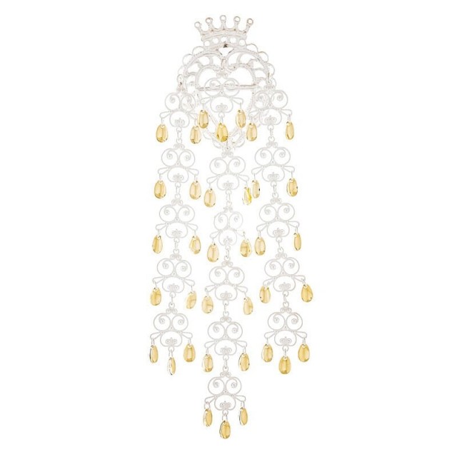 Kronesølje lang, hvit/forgyldt, Vossasylv