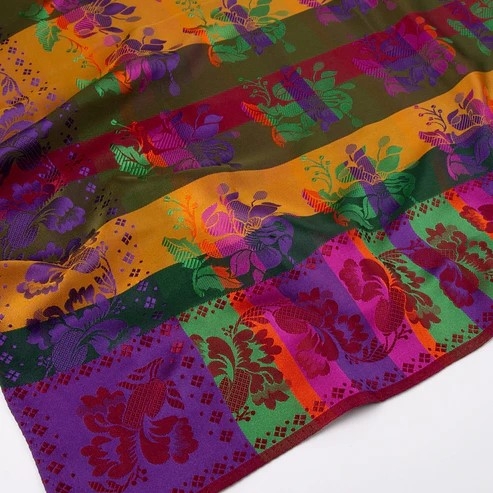 Silkeskjerf brukes til bunader og festdrakter over hele landet, men passer like godt som en "fargeklatt" for antrekk i hverdagen Det har blitt veldig populært å style opp bunaden med silkeskjerf. Str 70x70c