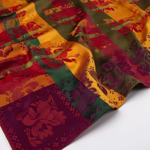 TYRIHANS SILKESKJERF: Skjerfet som både varmer og gleder, 100% ren silke av høy kvalitet, kjent for sin naturlige glans og tidløse design. Laget med inspirasjon fra norske tradisjoner og kulturarv. Skjerfet holder seg vakkert over tid og føles luksuriøst mot huden.