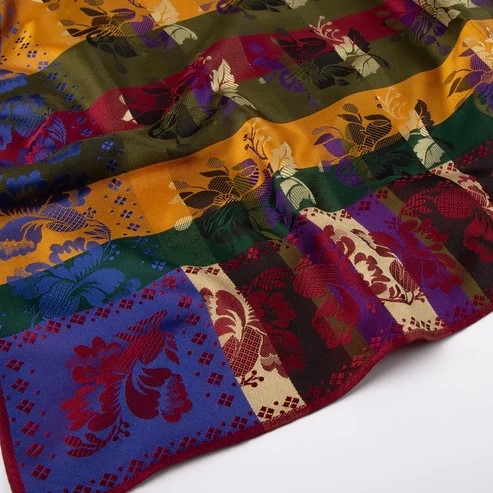 Silkeskjerf brukes til bunader og festdrakter over hele landet, men passer like godt som en "fargeklatt" for antrekk i hverdagen Det har blitt veldig populært å style opp bunaden med silkeskjerf. Str 70x70cm
