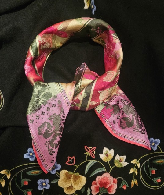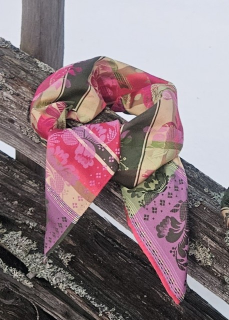 Silkeskjerf brukes til bunader og festdrakter over hele landet, men passer like godt som en "fargeklatt" for antrekk i hverdagen. Det har blitt veldig populært å style opp bunaden med silkeskjerf. Str 70x70