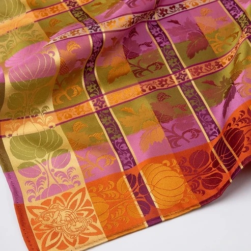 Silkeskjerf brukes til bunader og festdrakter over hele landet, men passer like godt som en "fargeklatt" for antrekk i hverdagen Det har blitt veldig populært å style opp bunaden med silkeskjerf. Str 70 x 70 cm