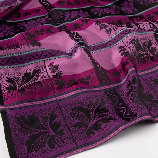 Silkeskjerf brukes til bunader og festdrakter over hele landet, men passer like godt som en "fargeklatt" for antrekk i hverdagen Det har blitt veldig populært å style opp bunaden med silkeskjerf. Str 75x75cm