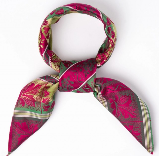 Silkeskjerf brukes til bunader og festdrakter over hele landet, men passer like godt som en "fargeklatt" for antrekk i hverdagen Det har blitt veldig populært å style opp bunaden med silkeskjerf. Str 75x75cm