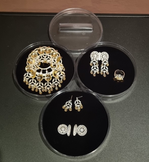 Porselen smykkeskrin med innvendig lufttett skrin i 3 etasjer. Til fest er det veldig koselig å sette skrinet på bordet med småkaker/smågodt i. Veldig koselig og praktisk gave og gi å få !!