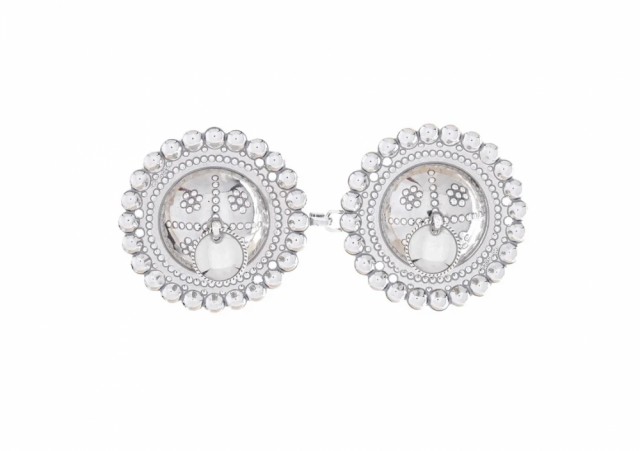 Oksidert 830s. Pakken inneholder sølje. 3 par borer, halssølje, ørepynt, beltespenne og mansjettknapper