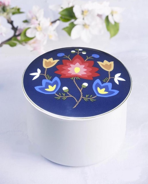 Porselen smykkeskrin med innvendig lufttett skrin i 3 etasjer. Til fest er det veldig koselig å sette skrinet på bordet med småkaker/smågodt i.Koselig og praktisk gave og gi å få !!