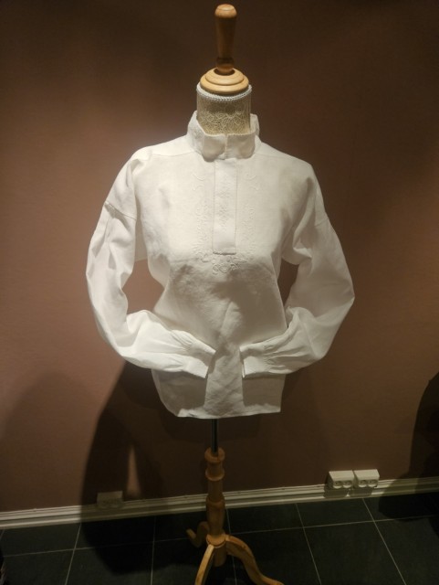 Bunadskjorte i lin til Vestfold bunadene. Vakkert brodert med det tradisjonsrike Jåberg mønsteret fra Vestfold