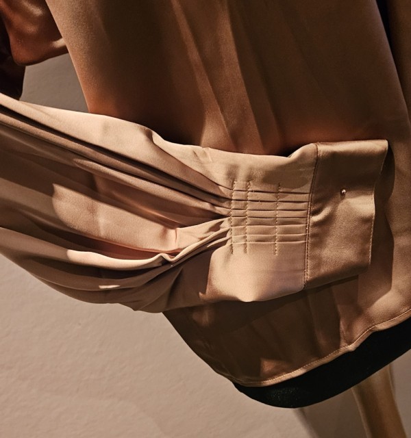 Bunadskjorte, silke brun, design Tones Bunadstue