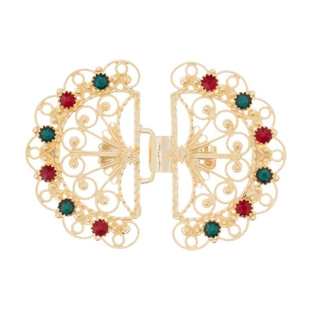Forgyldt med rød og grønne steiner med øsken