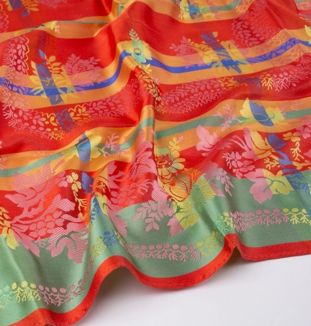 Silkeskjerf brukes til bunader og festdrakter over hele landet, men passer like godt som en "fargeklatt" for antrekk i hverdagen Det har blitt veldig populært å style opp bunaden med silkeskjerf. Str 75x75