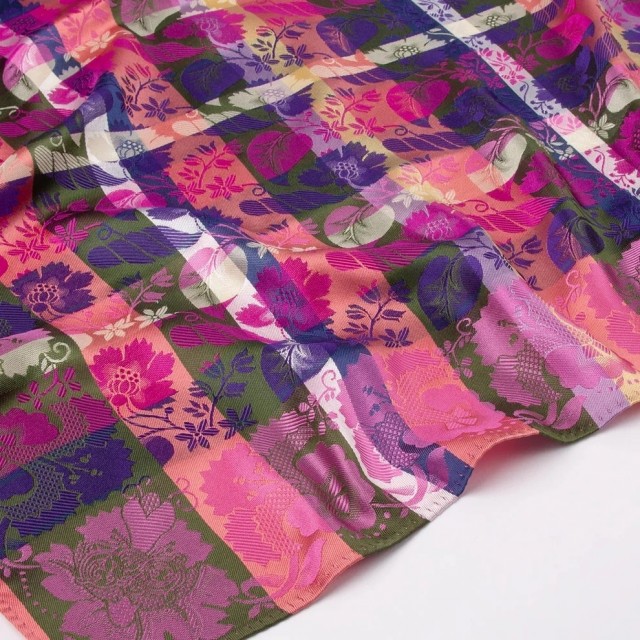 Silkeskjerf brukes til bunader og festdrakter over hele landet, men passer like godt som en "fargeklatt" for antrekk i hverdagen Det har blitt veldig populært å style opp bunaden med silkeskjerf. Str 70x70cm