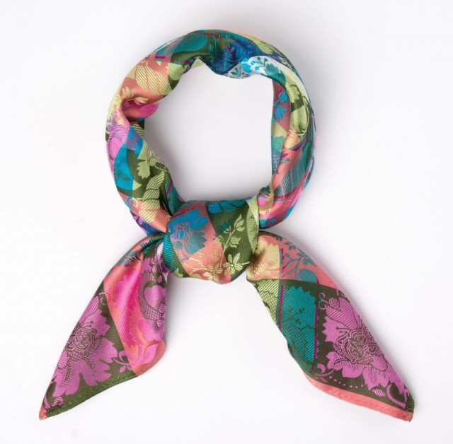 Silkeskjerf brukes til bunader og festdrakter over hele landet, men passer like godt som en "fargeklatt" for antrekk i hverdagen Det har blitt veldig populært å style opp bunaden med silkeskjerf. Str 70x70 cm