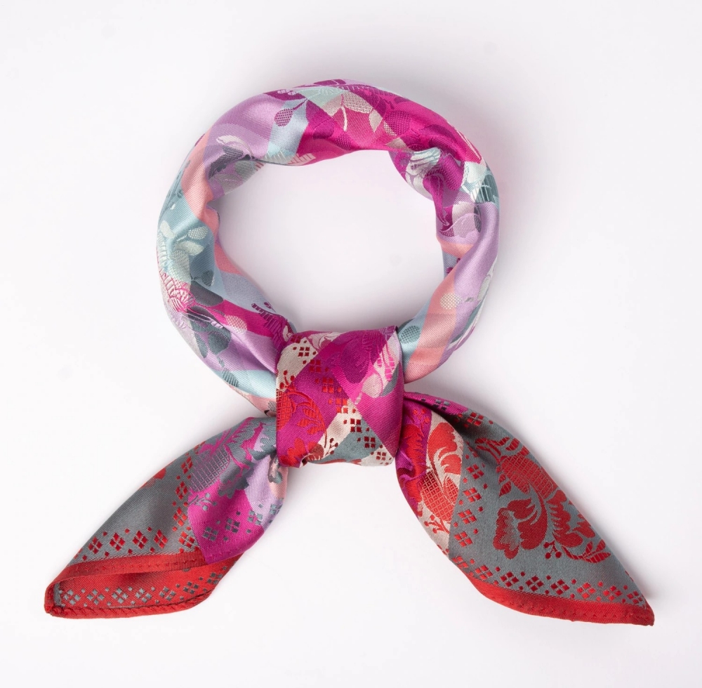 Silkeskjerf brukes til bunader og festdrakter over hele landet, men passer like godt som en "fargeklatt" for antrekk i hverdagen Det har blitt veldig populært å style opp bunaden med silkeskjerf. Str 70 x 70 cm