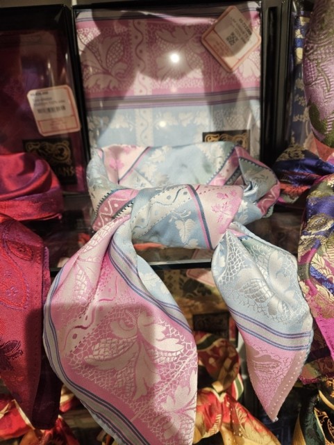 Silkeskjerf brukes til bunader og festdrakter over hele landet, men passer like godt som en "fargeklatt" for antrekk i hverdagen Det har blitt veldig populært å style opp bunaden med silkeskjerf. Str 70x70cm