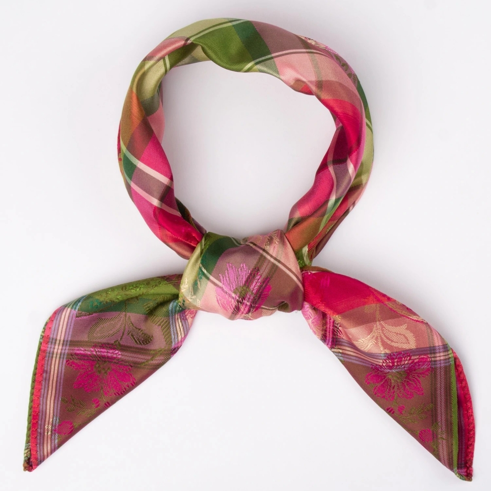 Silkeskjerf brukes til bunader og festdrakter over hele landet, men passer like godt som en "fargeklatt" for antrekk i hverdagen Det har blitt veldig populært å style opp bunaden med silkeskjerf. Str 65x65cm