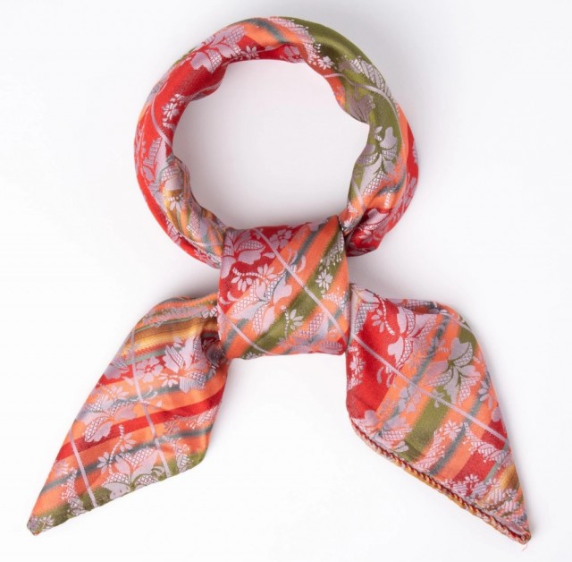 Silkeskjerf brukes til bunader og festdrakter over hele landet, men passer like godt som en "fargeklatt" for antrekk i hverdagen. Det har blitt veldig populært å style opp bunaden med silkeskjerf. Str 70x70