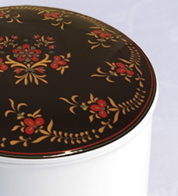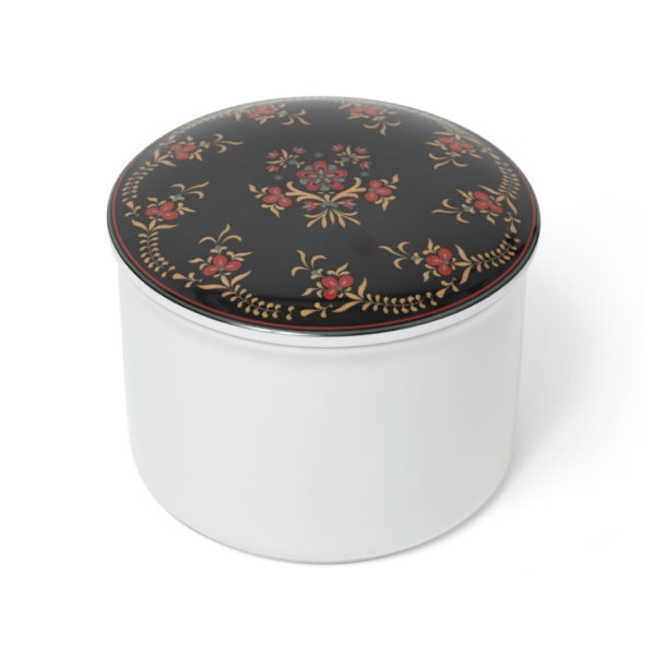 Porselen smykkeskrin med innvendig lufttett skrin i 3 etasjer. Til fest er det veldig koselig å sette skrinet på bordet med småkaker/smågodt i. Koselig og praktisk gave og gi å få !!