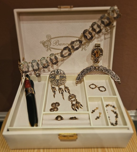 Løken sølvpakke med kniv Belte, brystsølje, sprette med heng, ring, ring knapp, ørepynt stor, mansjettknapper, veskelås, capehekte, kniv, armlenke PrisNOK48 719,00 inkl. mva. På lager Kjøp Vipps hurtigkasseKjøp nå med Vipps hurtigkasse Del dette Produktinfo Gjør deg klar til fest med vårt nøye utvalgte bunadsølv-sett. Dette komplette settet inneholder alle nødvendige sølvgjenstander for en fullverdig og tradisjonsrik oppkledning. Vi har samlet de essensielle delene i én pakke for å gjøre handelen enkel for deg.